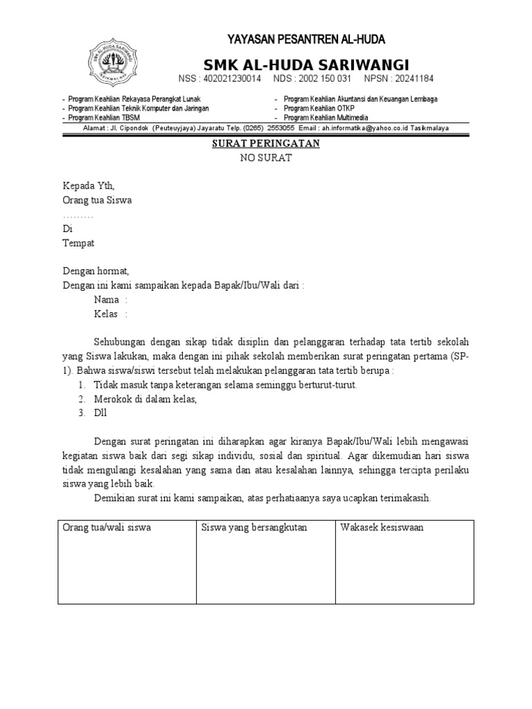 Contoh Surat Peringatan Untuk Siswa Pdf
